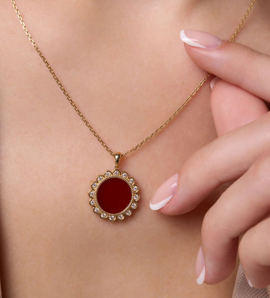 Flower Necklace in Diamond and Carnelian