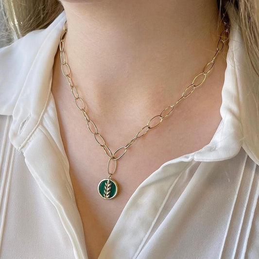 Fortuna Links Necklace in Green Malachite