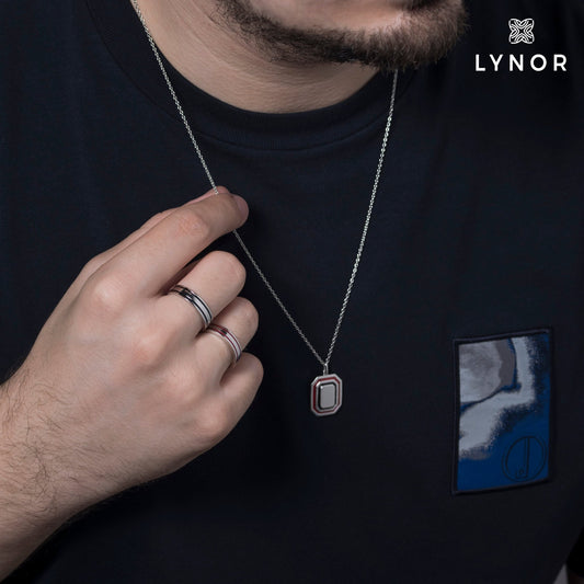 Ted Necklace, Red and Black Enamel - Platinum - for Him