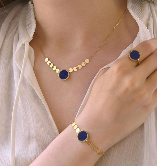 White Gold Hexa Necklace in Diamond and Lapis Lazuli