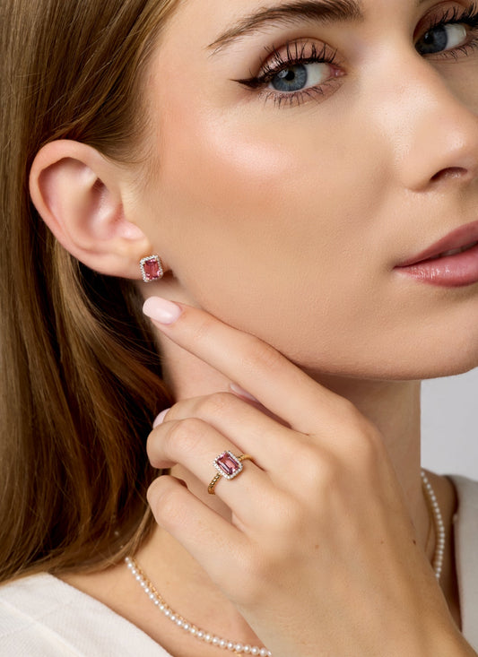 Celeste Earrings in Diamond and Pink Tourmaline