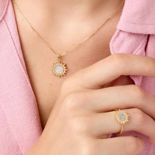 Sunbeam Necklace in Diamond and Mother of Pearl